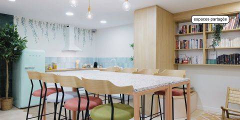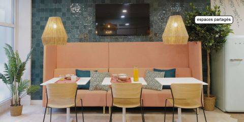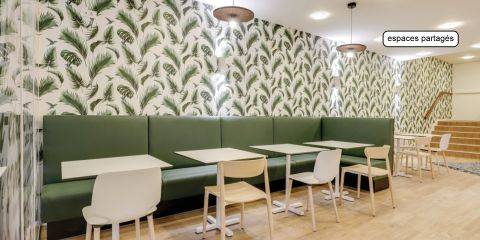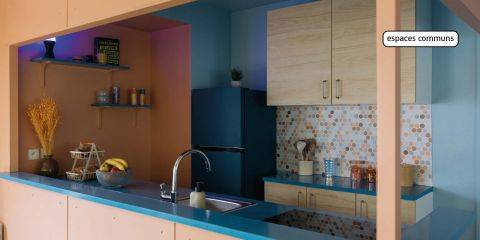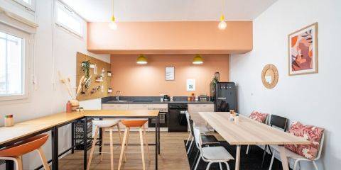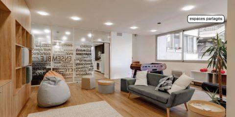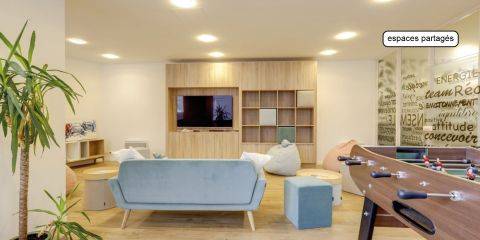 Résidence de 10 étages Le logement : Pièce de vie au mobilier design : lit coffre, miroir, étagères, espace repas, espace bureau avec assises et grands rangements Kitchenette tout équipée : plaques vitrocéramiques, rangement, réfrigérateur, hotte et micro-ondesSalle de bain équipée d’une douche et d’un meuble vasque Les services au sein de la résidence : Espace Co-working Espace Salon Espace Laverie Espace réception Cafétéria Les Services Innovation : Mood Party et Animations Distributeur de boissons TV Partagée Hall Numérique Mon Building Cuisine Partagée Matériel de sport Prêt de matériel Babyfoot Vidéo-surveillance La résidence est équipée en Internet.