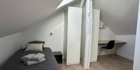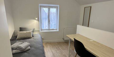 Nous proposons à la location une chambre entièrement meublée située dans un quartier pavillonnaire calme de Palaiseau, à 5 mn à pied de la gare RER B de "Palaiseau" et des commerces. La chambre dispose de sa salle d’eau privative, d’un mobilier complet (lit, bureau, rangements, frigo top, micro-ondes) ainsi que d’une décoration soignée et contemporaine. Le logement entièrement rénové offre 6 autres chambres et 3 studios, une cuisine et buanderie communes, parfaitement équipés et inclut plusieurs services pour un confort optimal : ✔ Internet haut débit ✔ Charges incluses (eau, électricité, chauffage) ✔ Entretien hebdomadaire des parties communes ✔ Logement clé en main, prêt à vivre Cadre calme et qualitatif, idéal pour étudiant(e) recherchant un logement confortable et sans contraintes. Disponible immédiatement